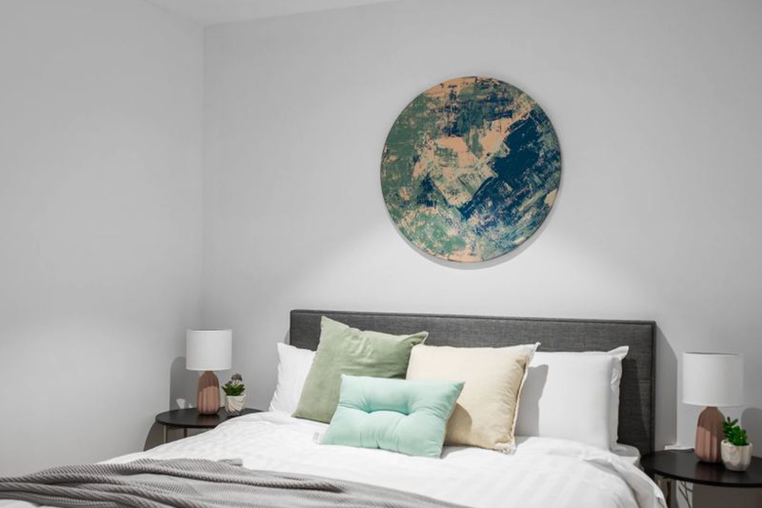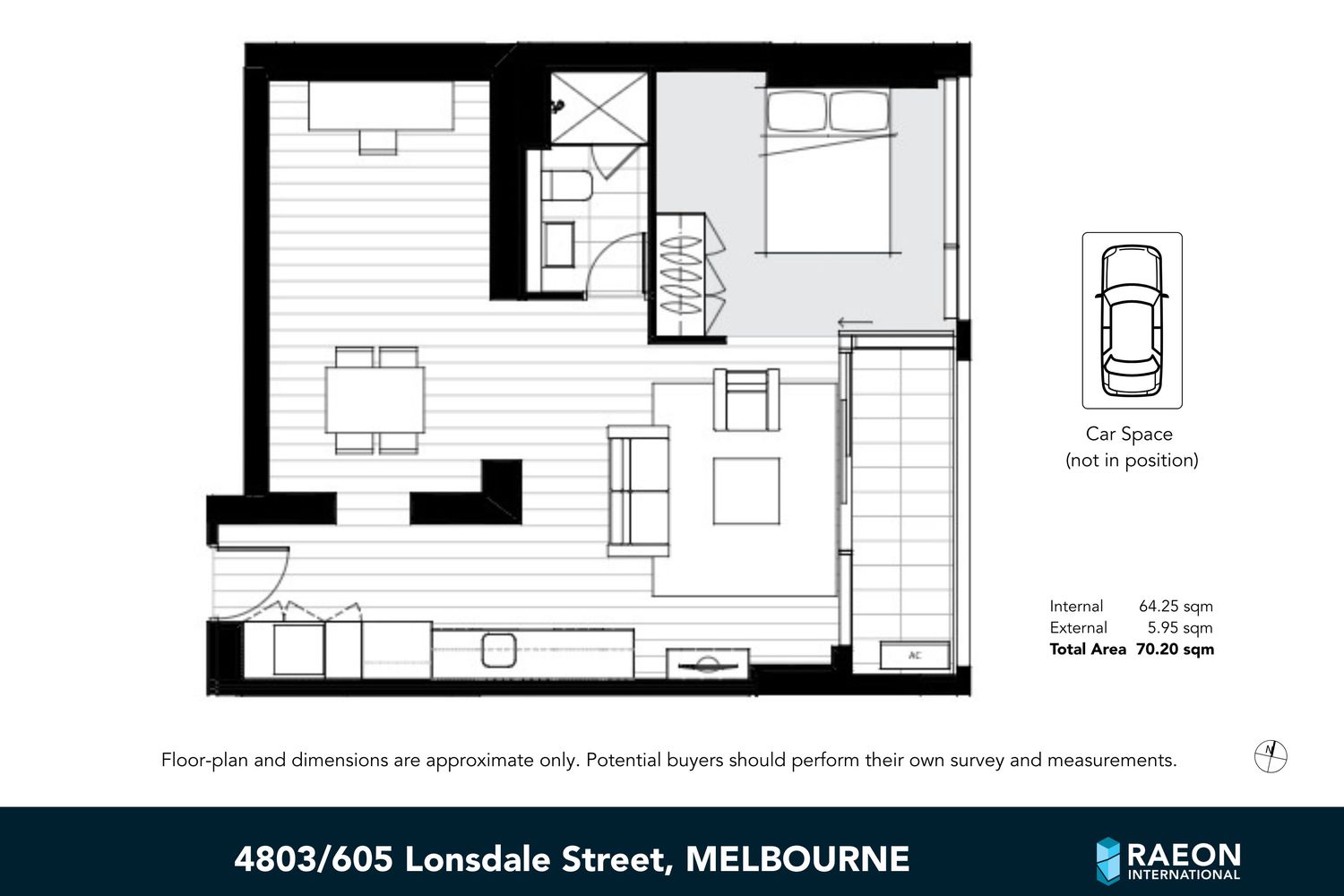 Commanding a prime Level 48 position in The Fifth, this light-filled 1-bedroom + study residence pairs effortless CBD convenience with panoramic outlooks and secure parking. Floor-to-ceiling glazing draws natural light across open-plan living and dining, extending to an east-facing balcony that welcomes the morning sun. A well-appointed kitchen anchors the home, while the separate study is ideal for work-from-home or a quiet reading nook. The bedroom features built-in robes, and the sleek bathroom is supported by a European laundry and split-system heating/cooling for year-round comfort. A secure car space completes an already compelling package.